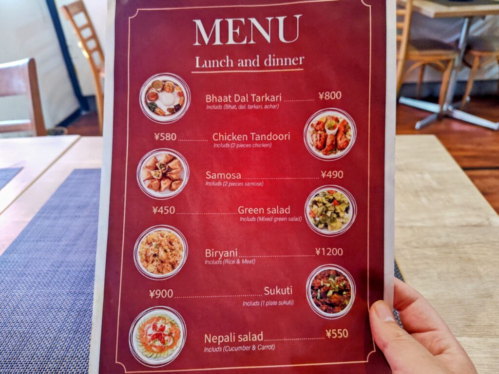 メニューはネパール語のみ表記※店外は日本語あり