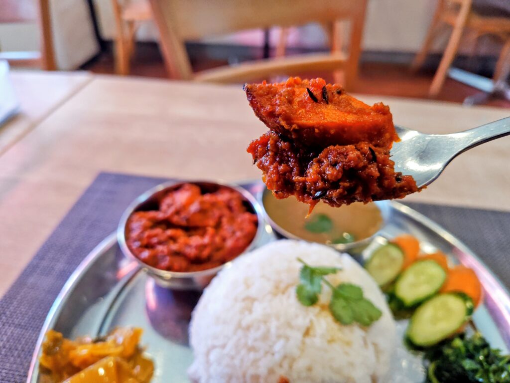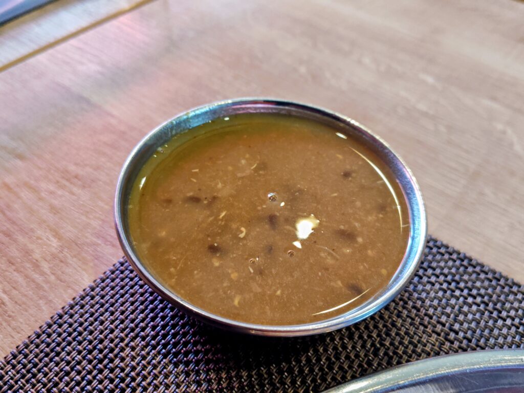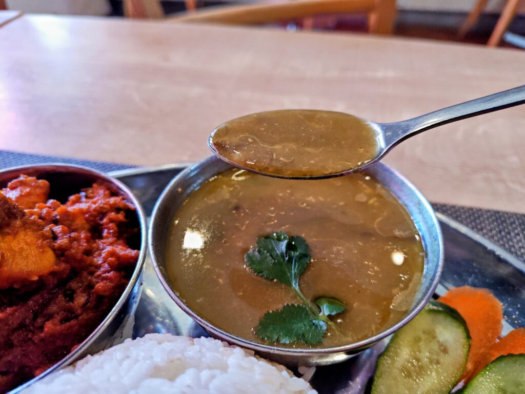 今まで彼方此方でダルバートを頂いていますが、記憶に刻まれそうな過去イチ塩気が強い豆スープです。