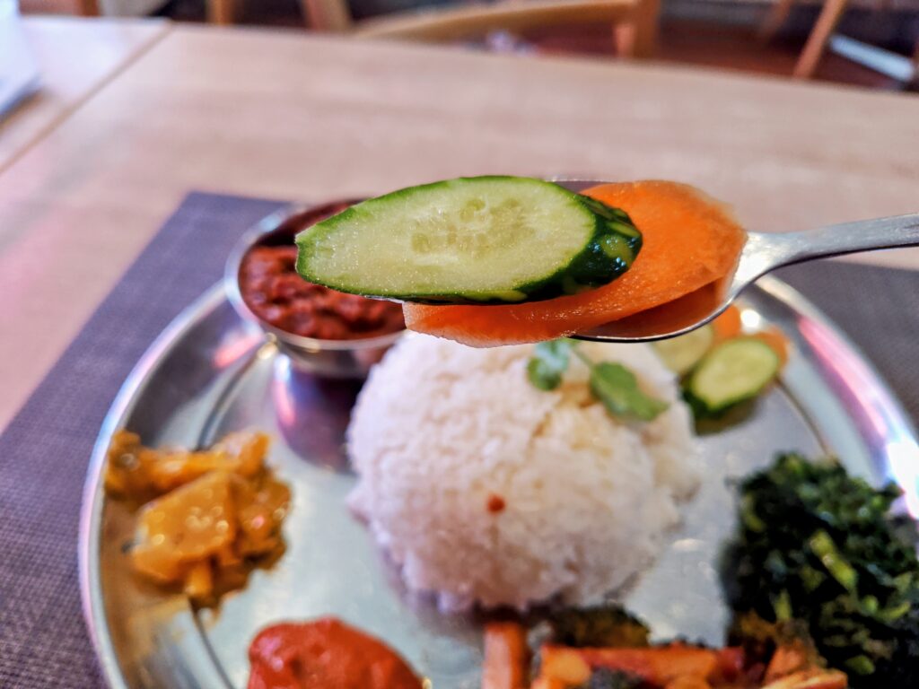 ドレッシング等なし、ダルバートならヨーグルトサラダ(Raita)なのですが。