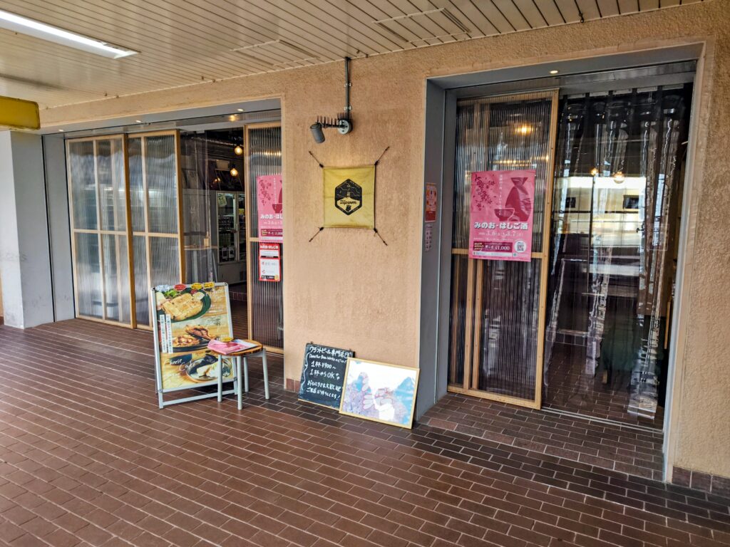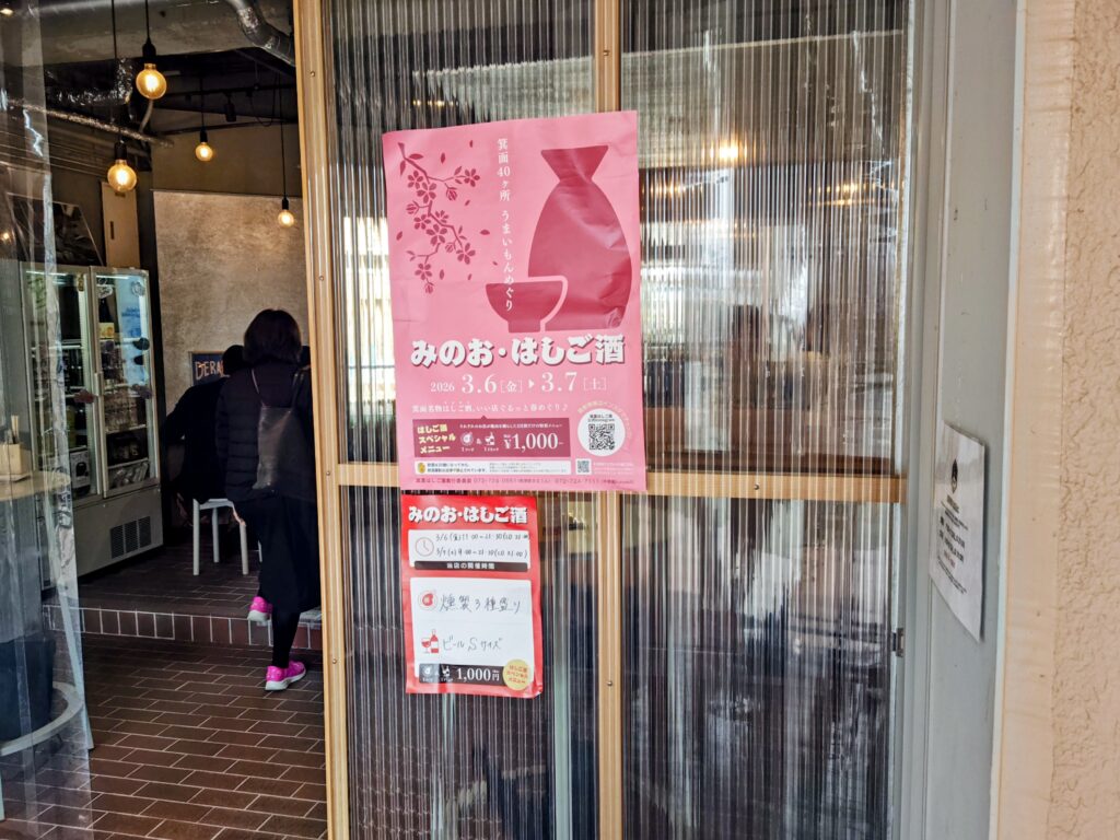 『みのう・はしご酒』参加店はお店前に貼り紙等があります。