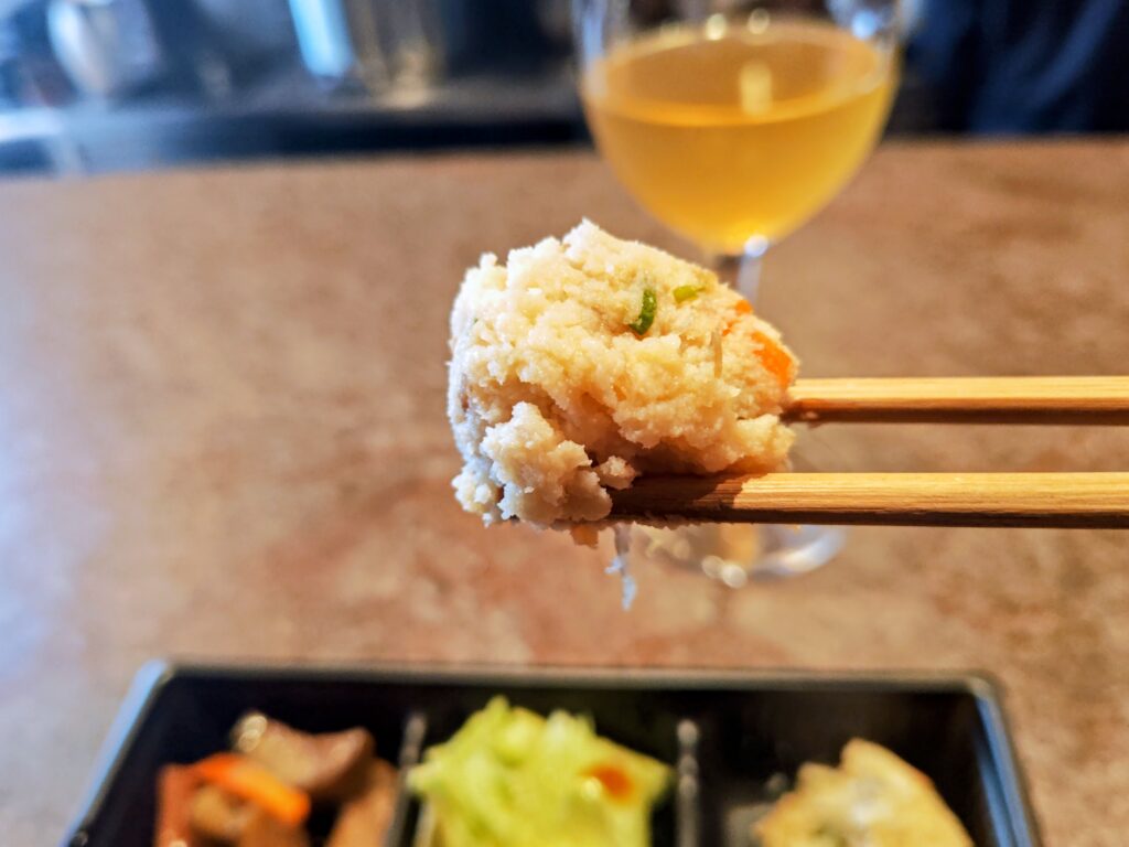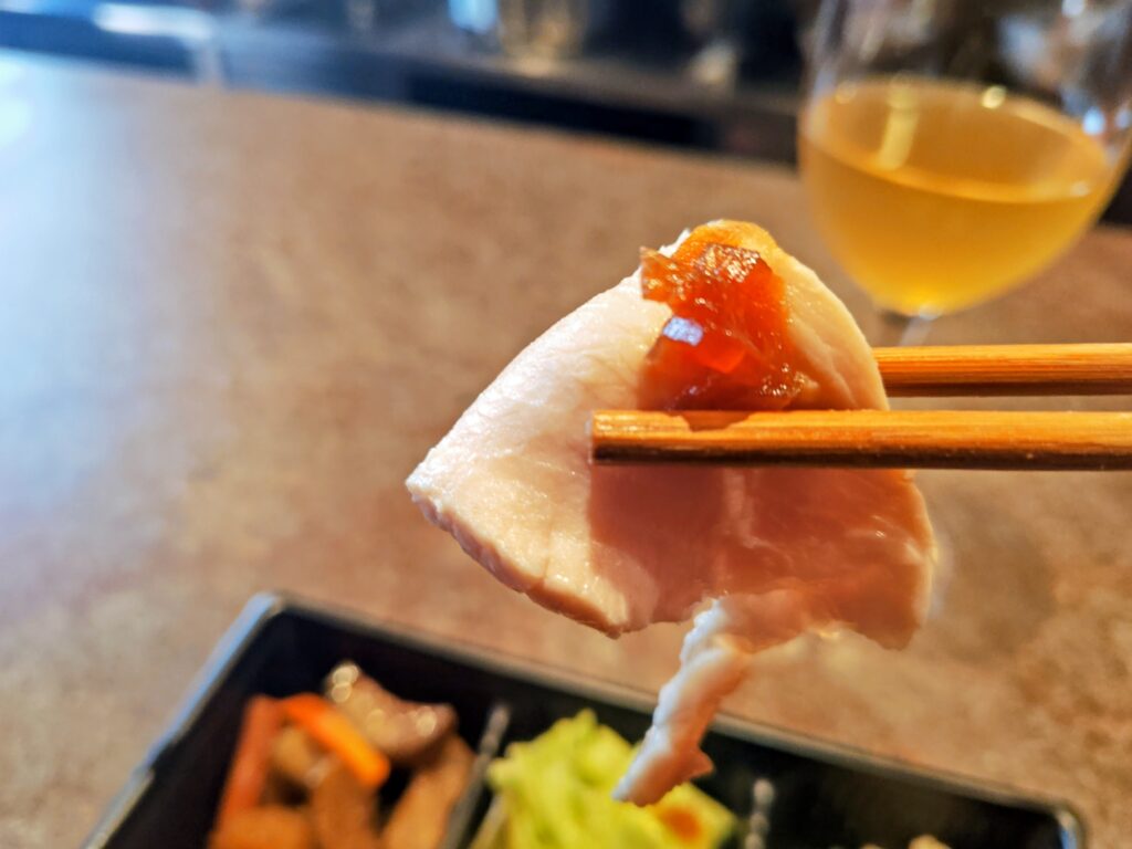 鶏ハムはしっとり、おからは滑らかに上品な味付け、煮付けは煮加減が絶妙でワインが進みます。