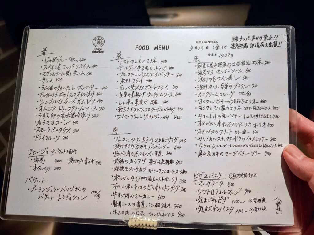 お会計を済ませ、皆さんにお礼の挨拶をしてutage dotonboriさんを後にしました。