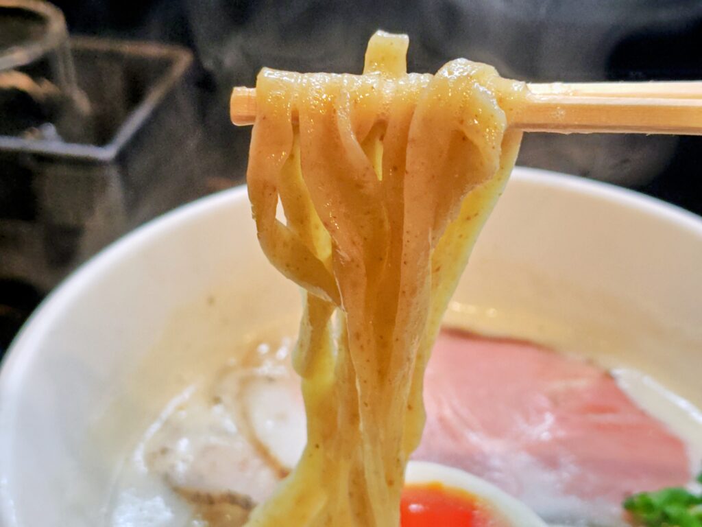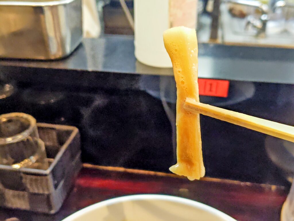 加水率高めのもっちりした食感にこのスープが絡んで旨いです!