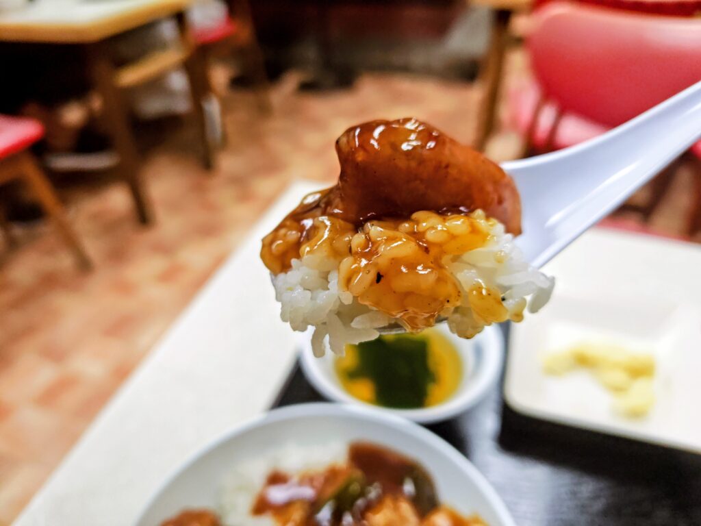 大盛りご飯を少し食べてから、すぶた全トッピング!