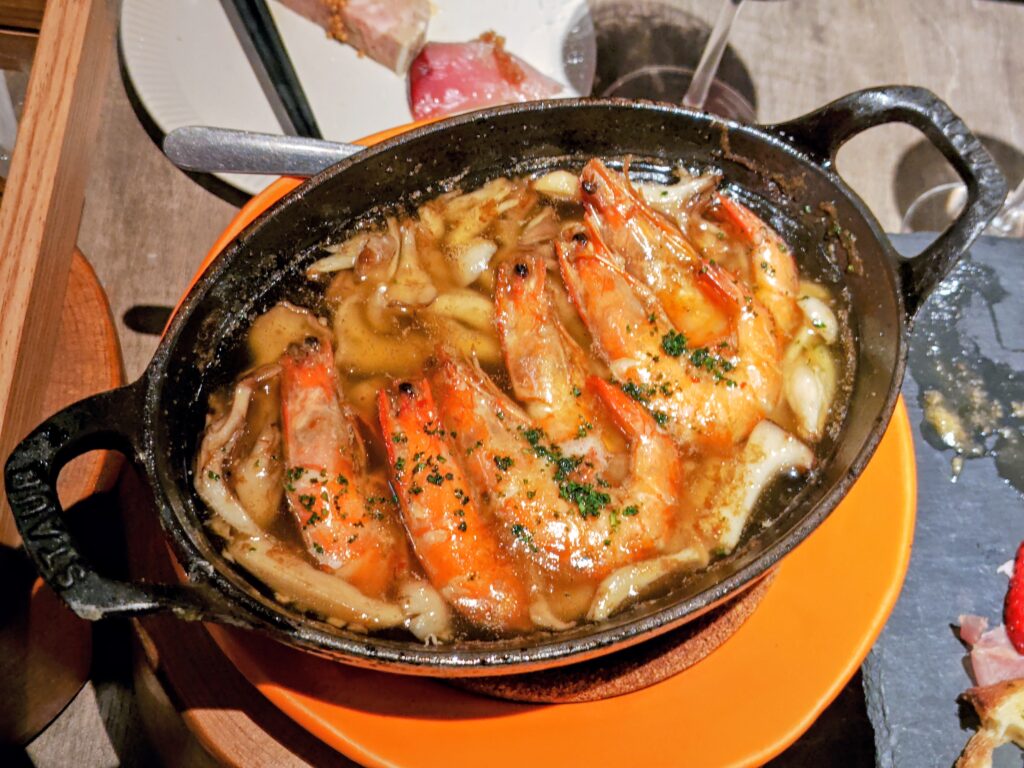 有頭エビにシメジ、舞茸等が入ったアヒージョ!
