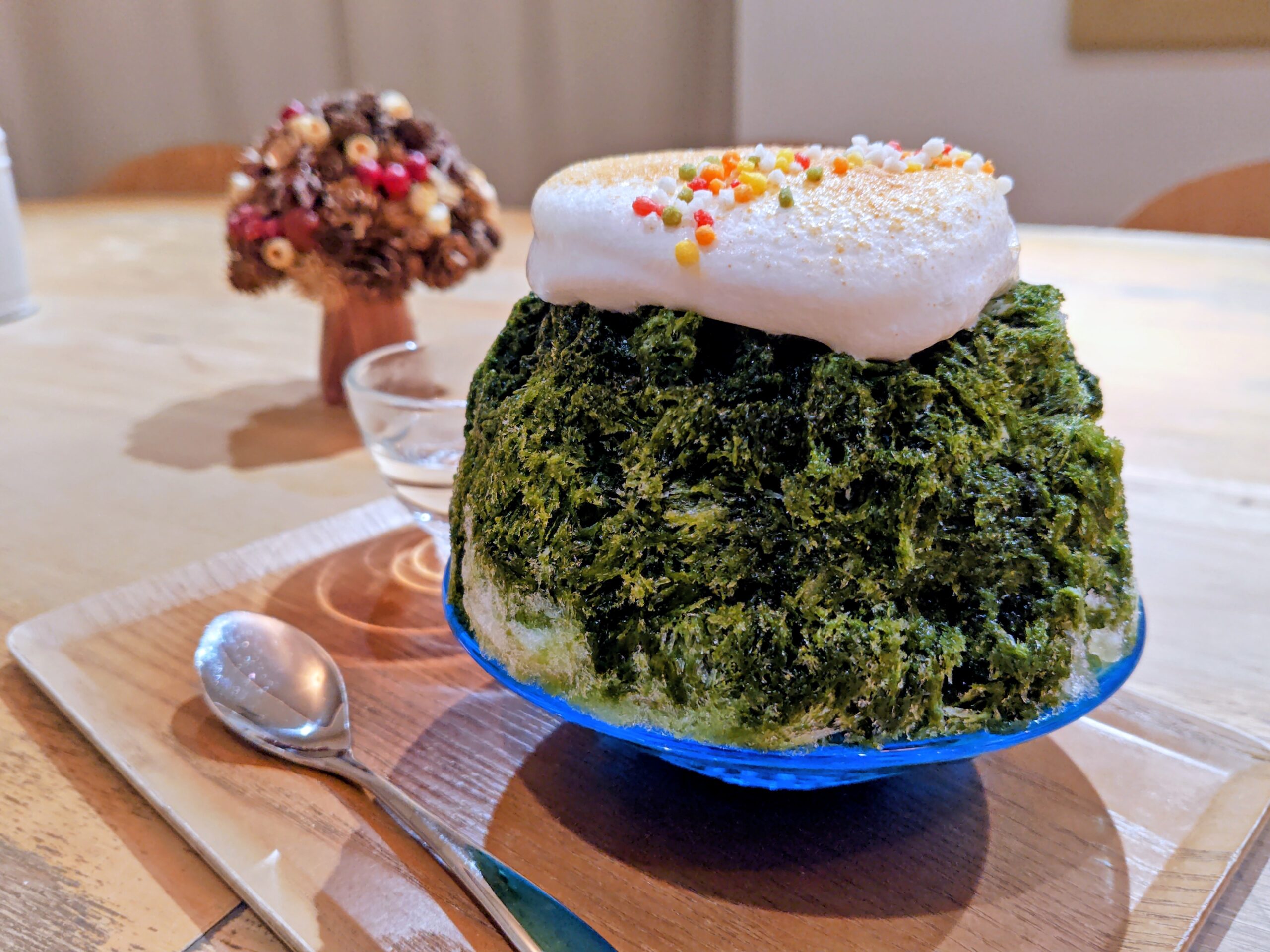 まずは側面の大和抹茶シロップのかき氷から。