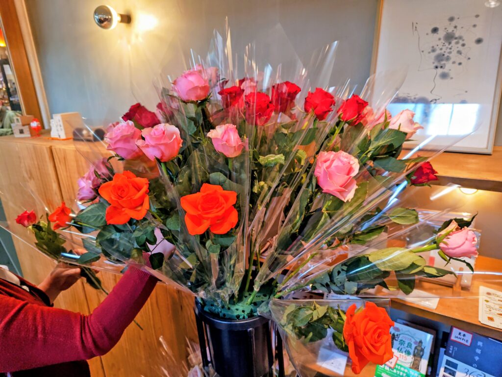 スタッフさんから入口に飾られている薔薇を一輪づつ頂きます。