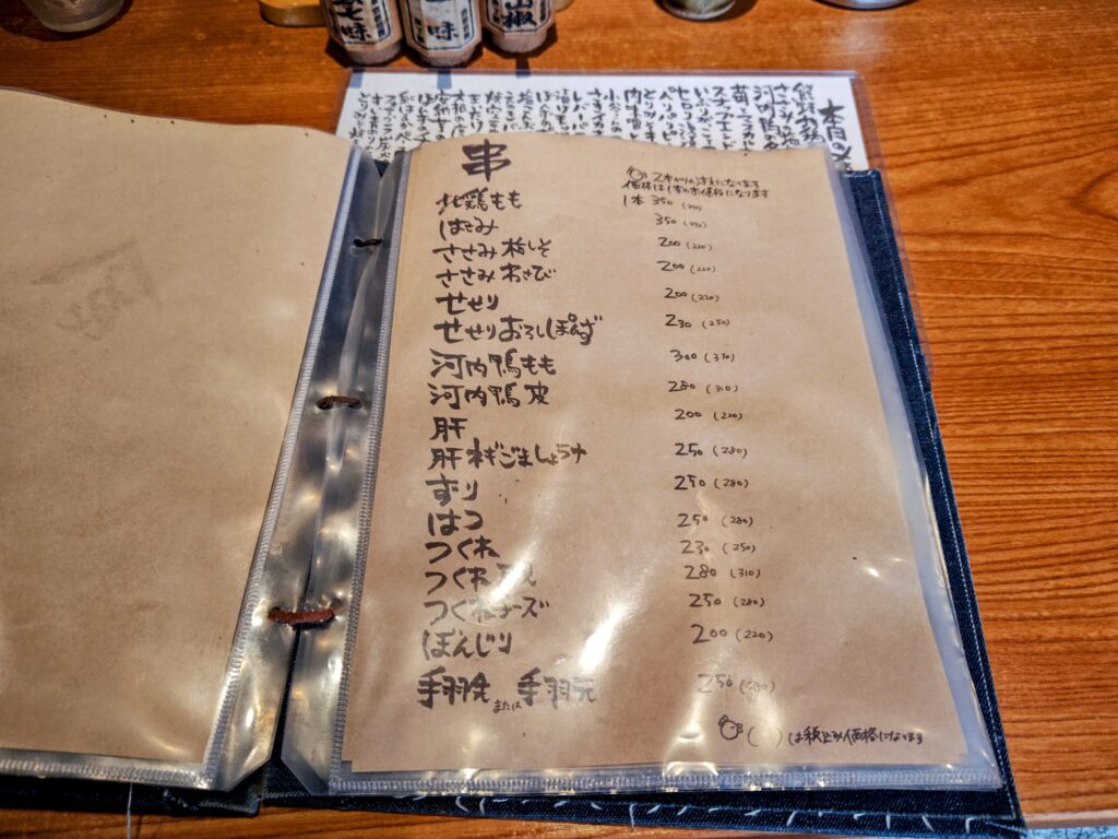ご予約は2名様からの関係か串は2本からの注文の記載あり。