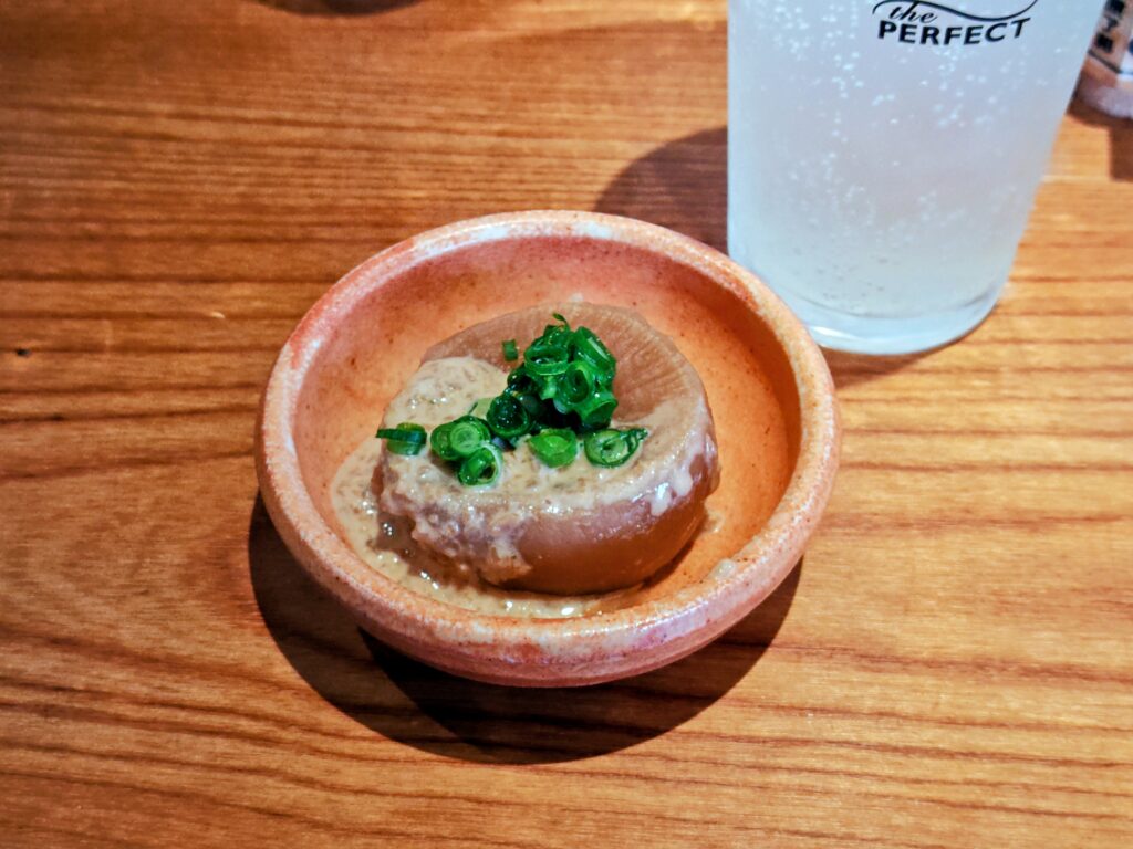 この日にお通しは胡麻タレの乗った大根煮。
