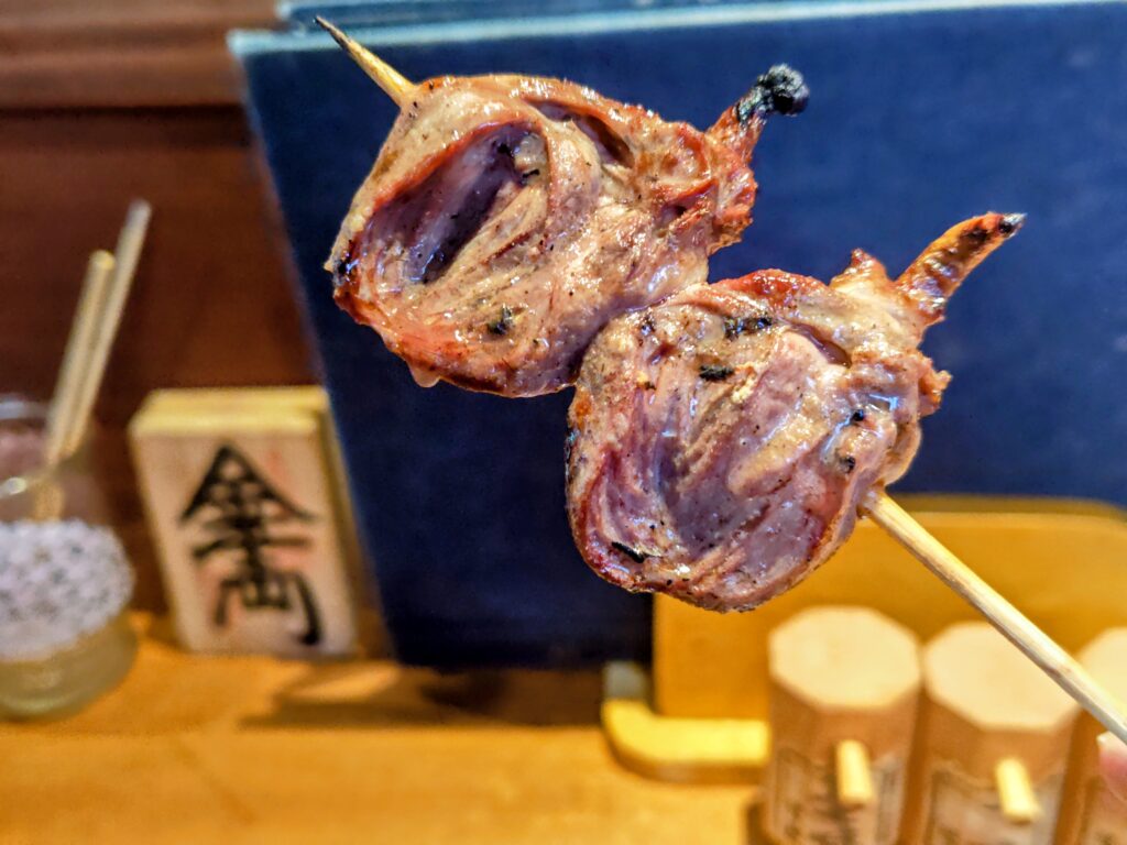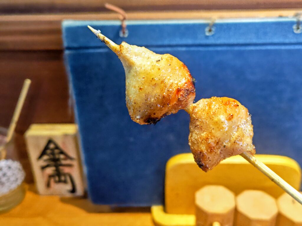 濃厚な肝炙り、地鶏ももの弾力と旨味、はさみの絶妙なタレ具合と満足度の高い串ばかりです。