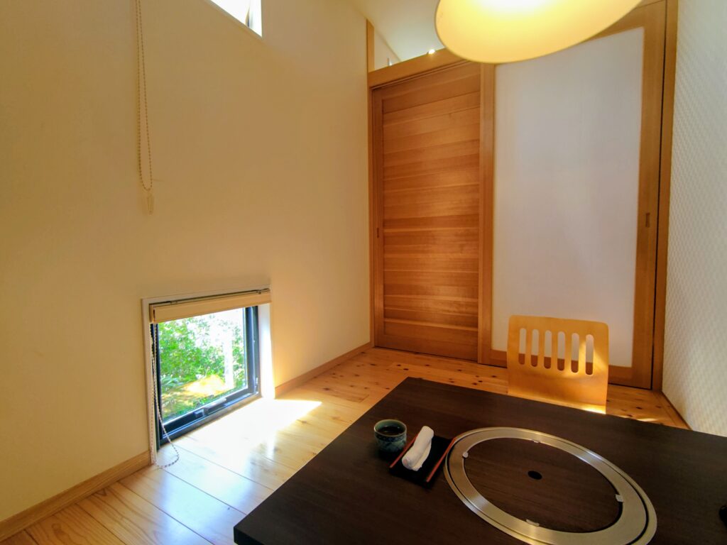 自然光が入り窓からお庭を見れる素敵な個室です。