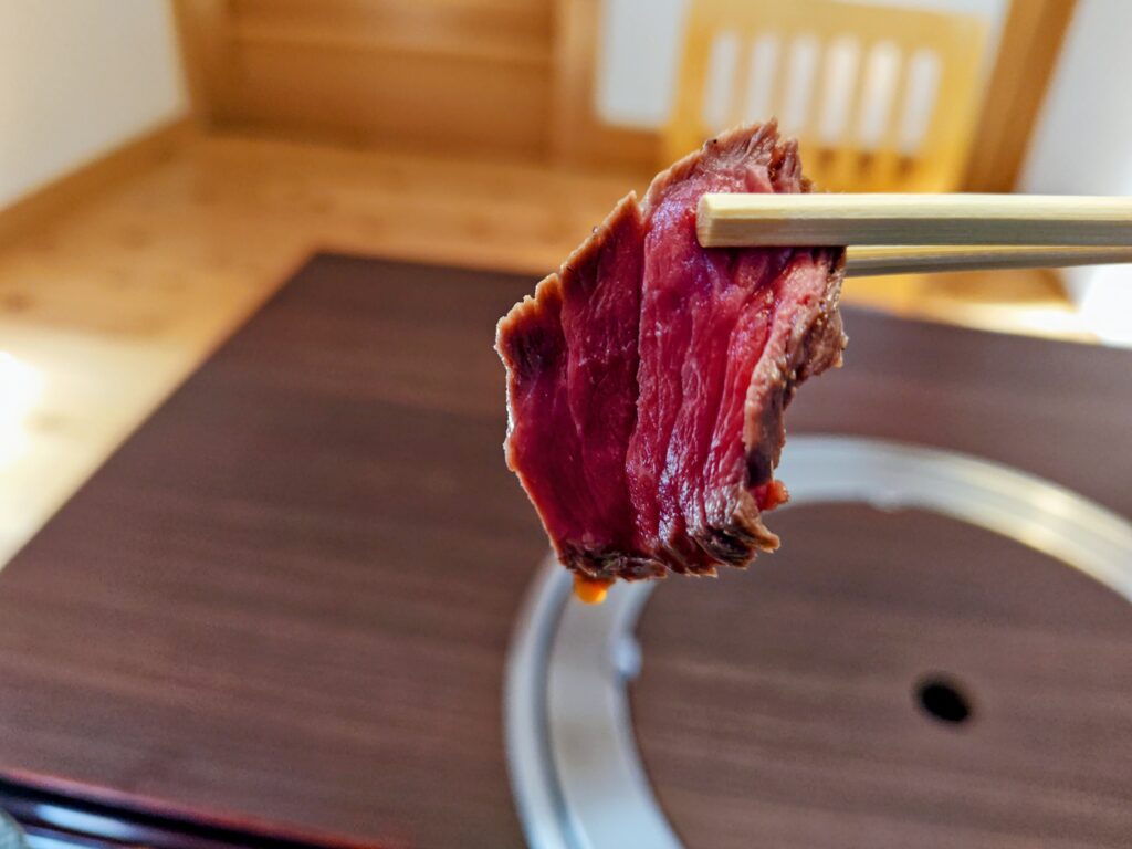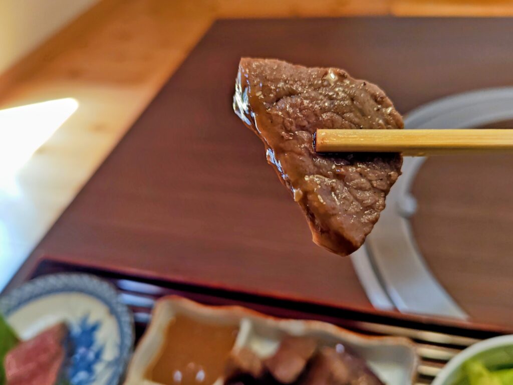 ポン酢がかけられており黒毛和牛の旨味がしっかりしています。