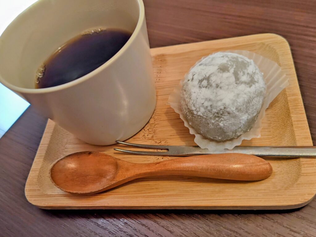 この日の和菓子は抹茶餡大福!