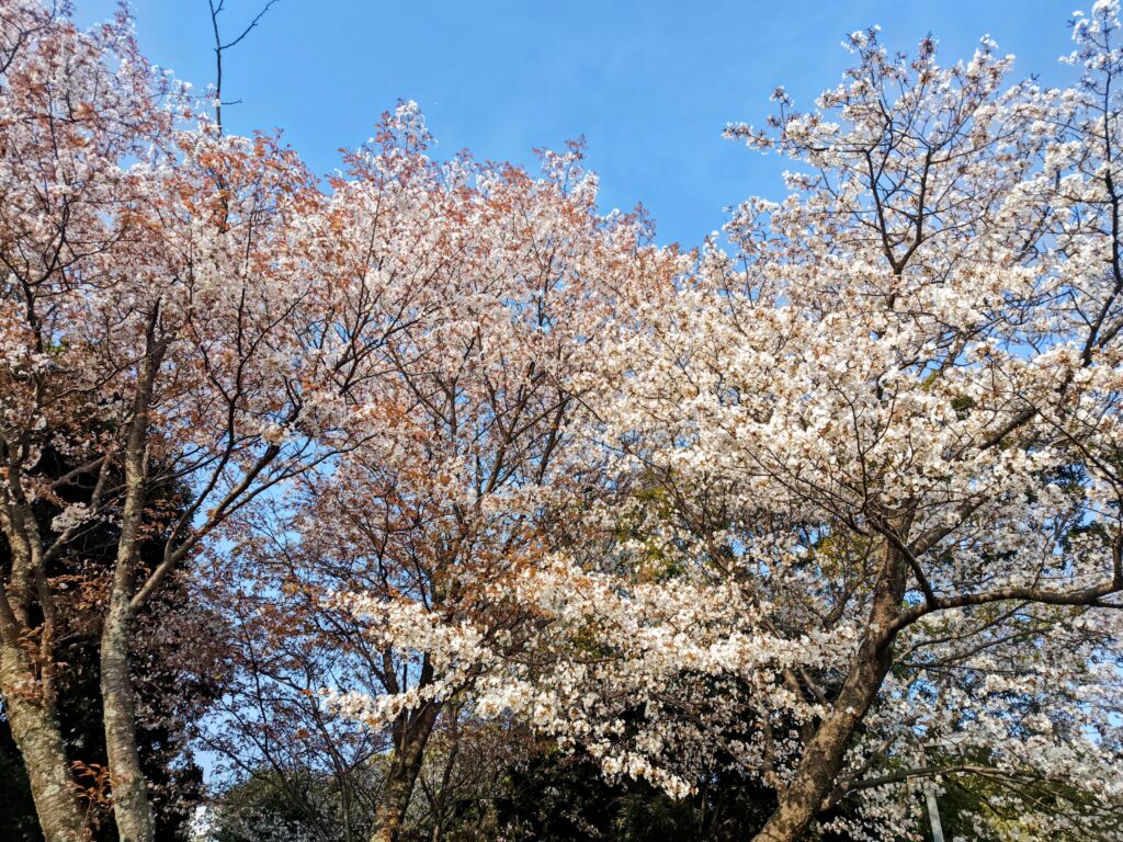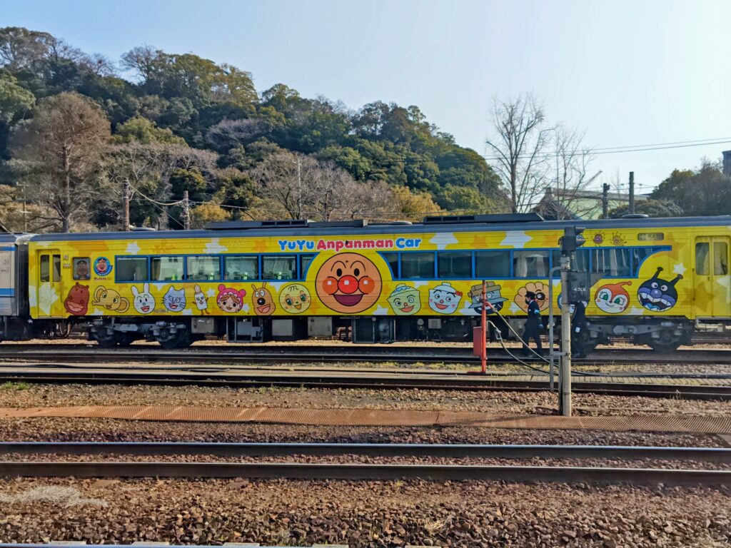 美しい桜が満開に咲き、JR四国が運行している『ゆうゆうアンパンマンカー』を偶然見ることに。
