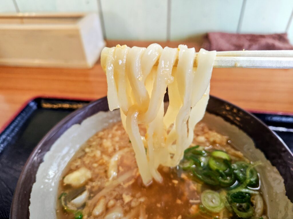 湯掻き立てのうどんは滑らかで伸びがあり、しなやかさと粘りを兼ね備えたもの。