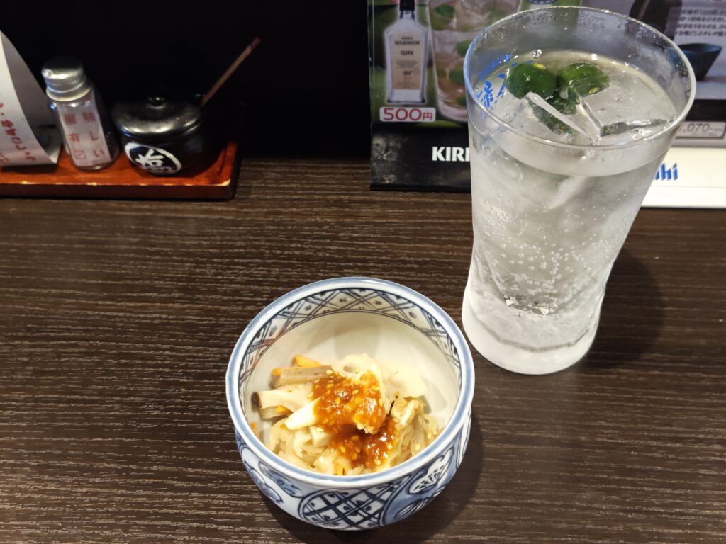 まずはお通しとドリンクから。