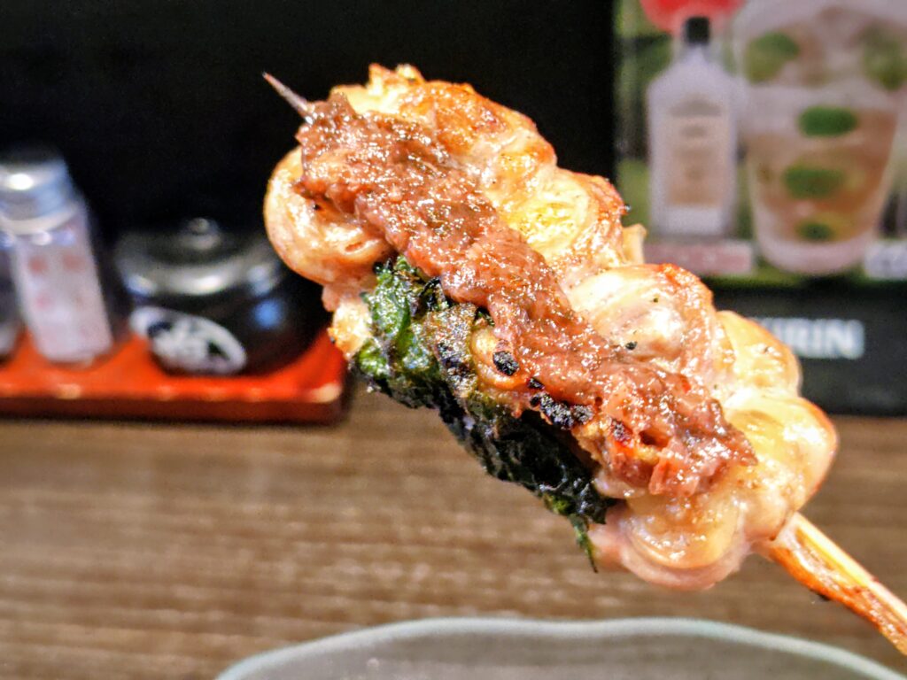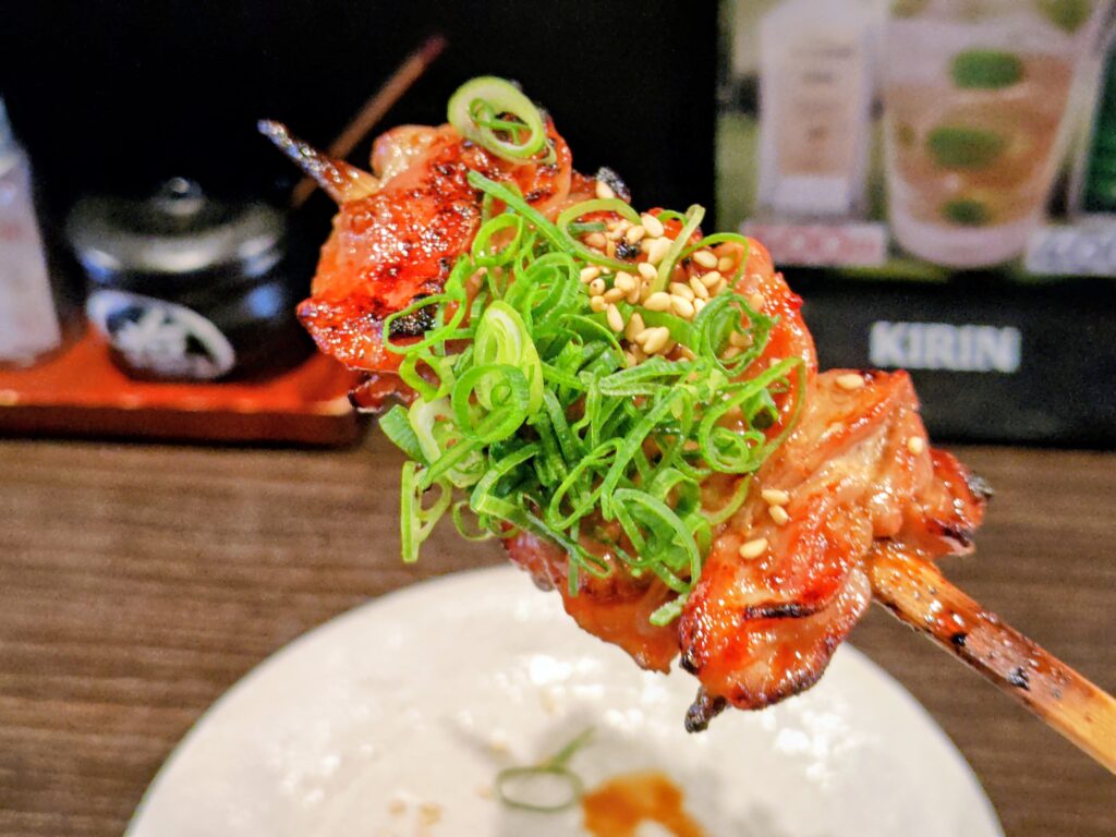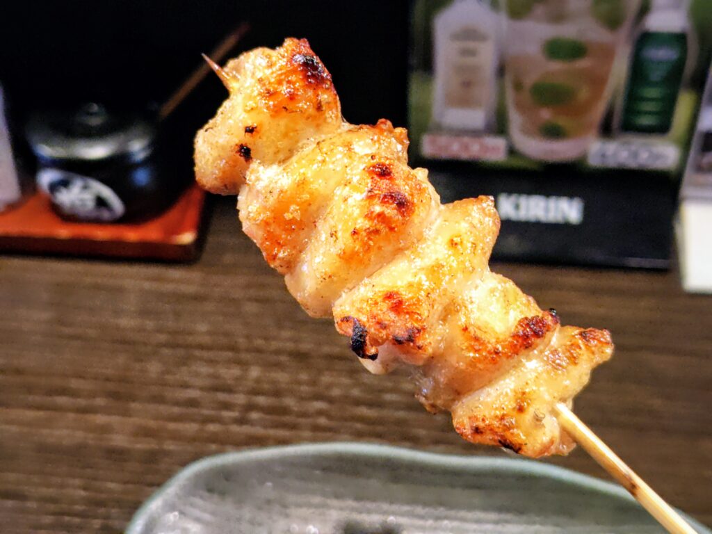 食感はとろ皮と似ていますが、脂の癖が強く食べ比べしたくなる串です。