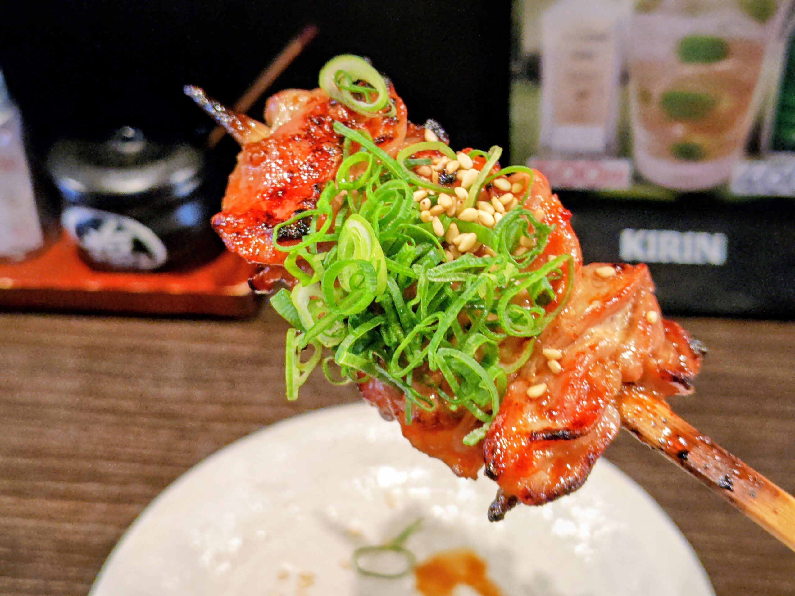 コリコリした食感に阿波尾鶏の濃厚な旨みが味わえ刻み葱の清涼感とオススメの串です。