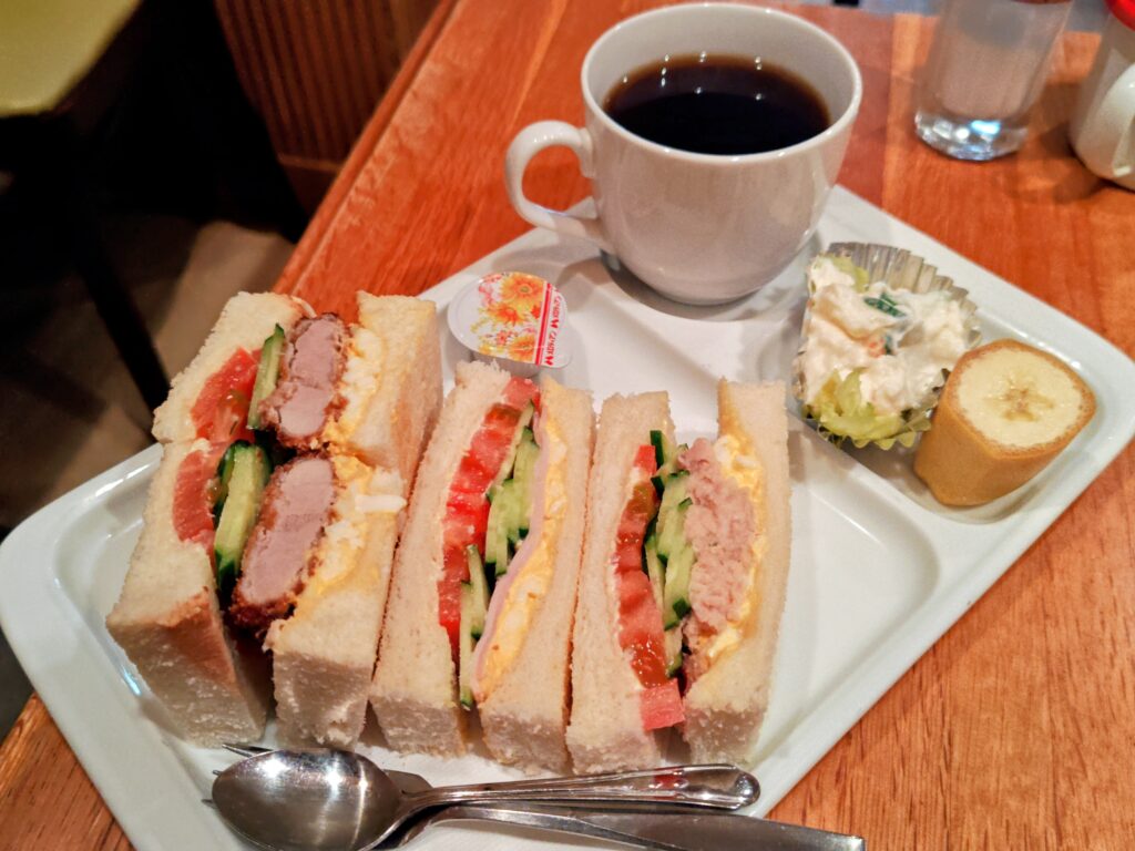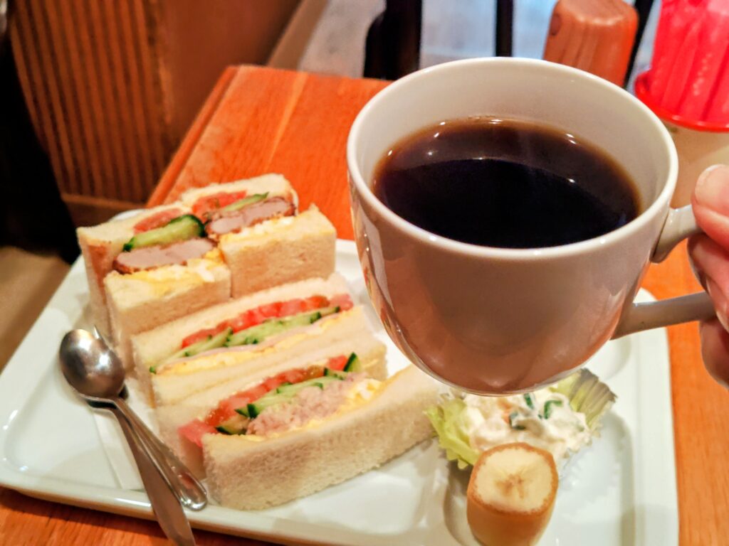 だんな三色サンド、ホットコーヒー