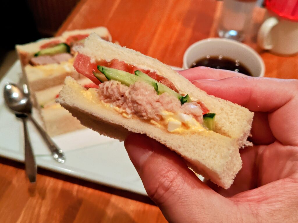 ツナサンドはツナ、玉子、胡瓜、トマトの組合せ。