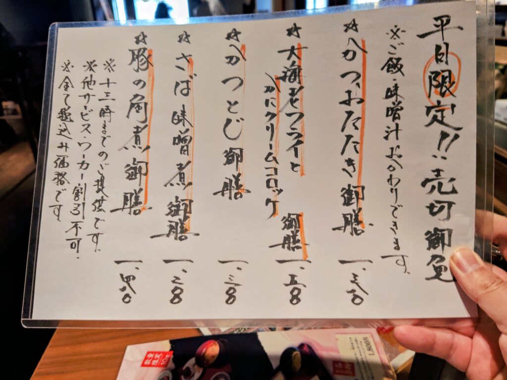 ランチメニューは平日限定売切御免の御膳5種(11~13時限定)