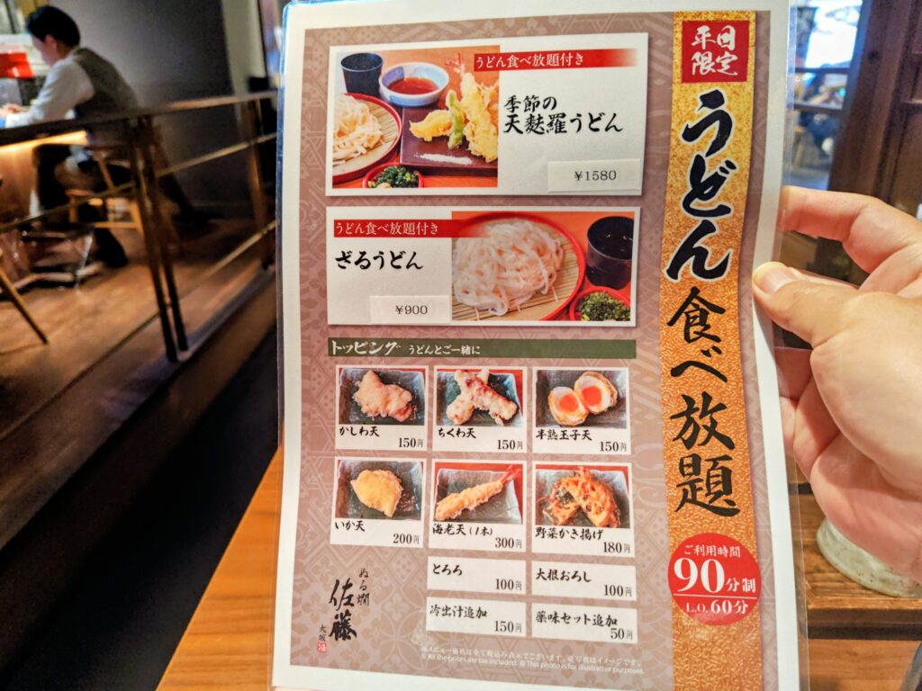 90分制(LO60分)ざるうどん900円はウメキタ一等地にビックリです。