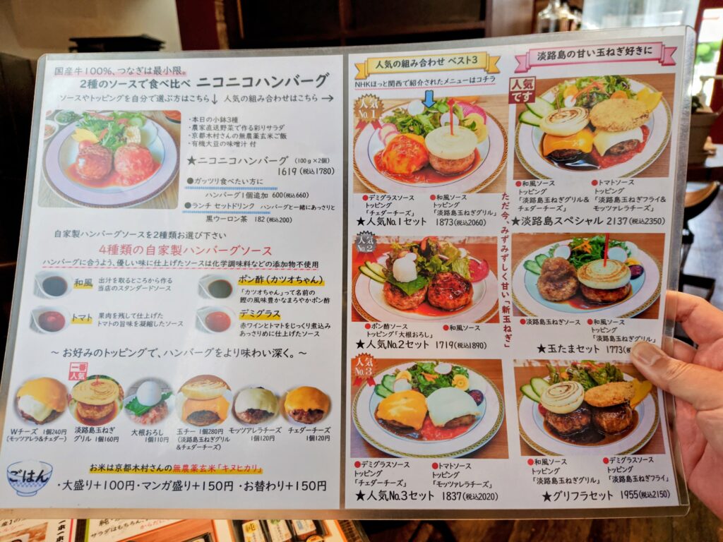 ランチはニコニコハンバ(ハンバーグ2個)をベースにトッピングを組合せ。