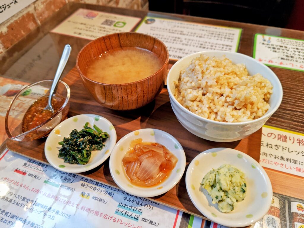 ご飯は京都産無農薬玄米キヌヒカリ。