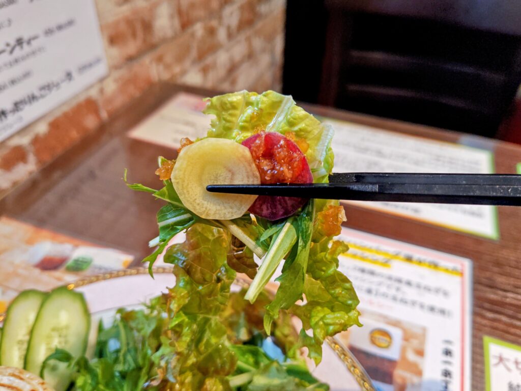 農家さん直送の野菜に新玉ねぎの柔らかく自然な甘さが際立っています。