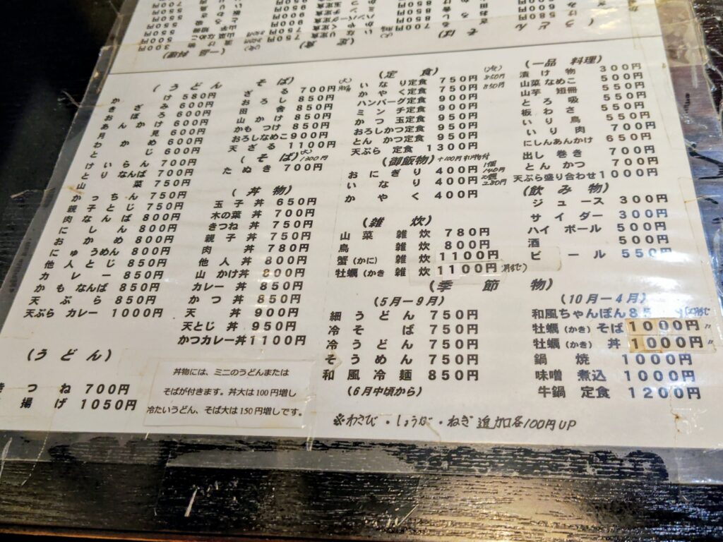 メニューは、うどん・そば、丼物、定食、雑炊、季節物、ドリンク!