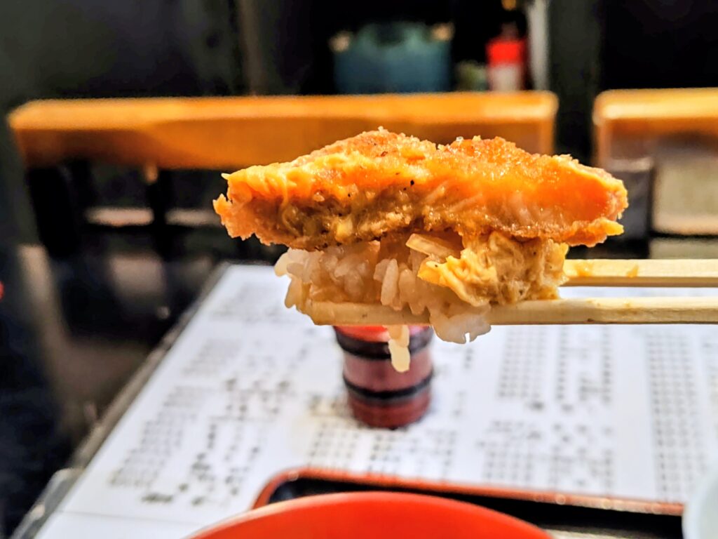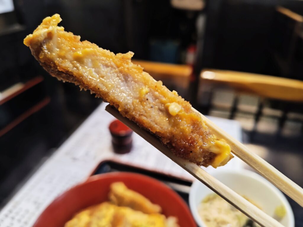 カツのあったポジションを見るとたっぷり玉子にツユダクが一目でわかります。