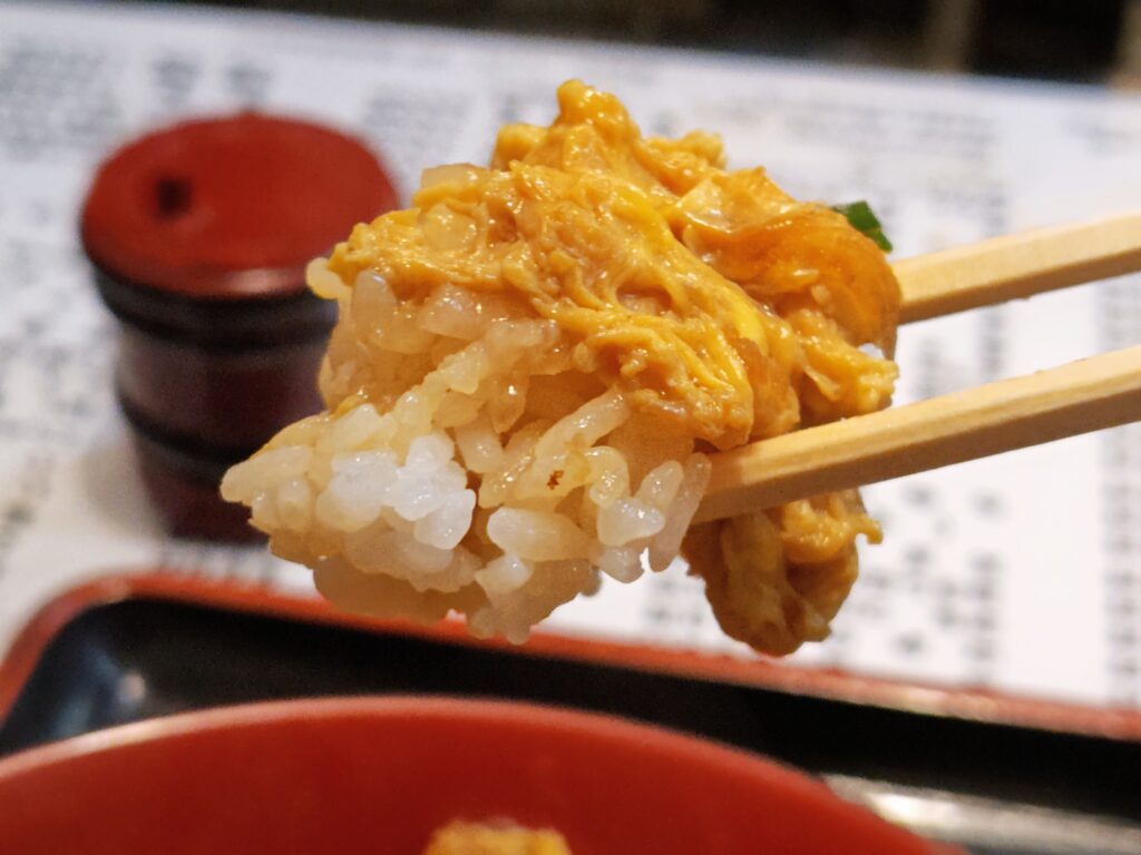 ご飯はやや硬めに炊かれ出汁たっぷりの玉子と一緒に頂く幸せ!