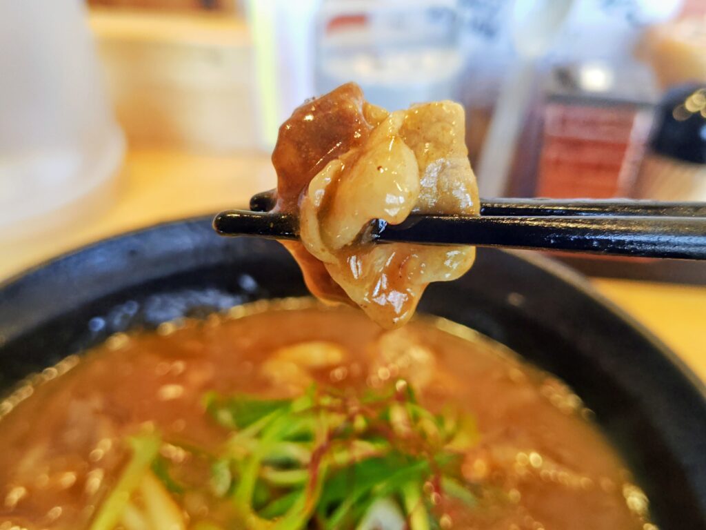 具材は黒毛和牛の油かす、山形県産豚肉、九条葱、淡路島産玉ねぎ、糸唐辛子。