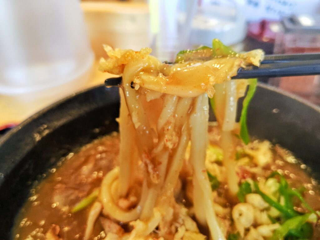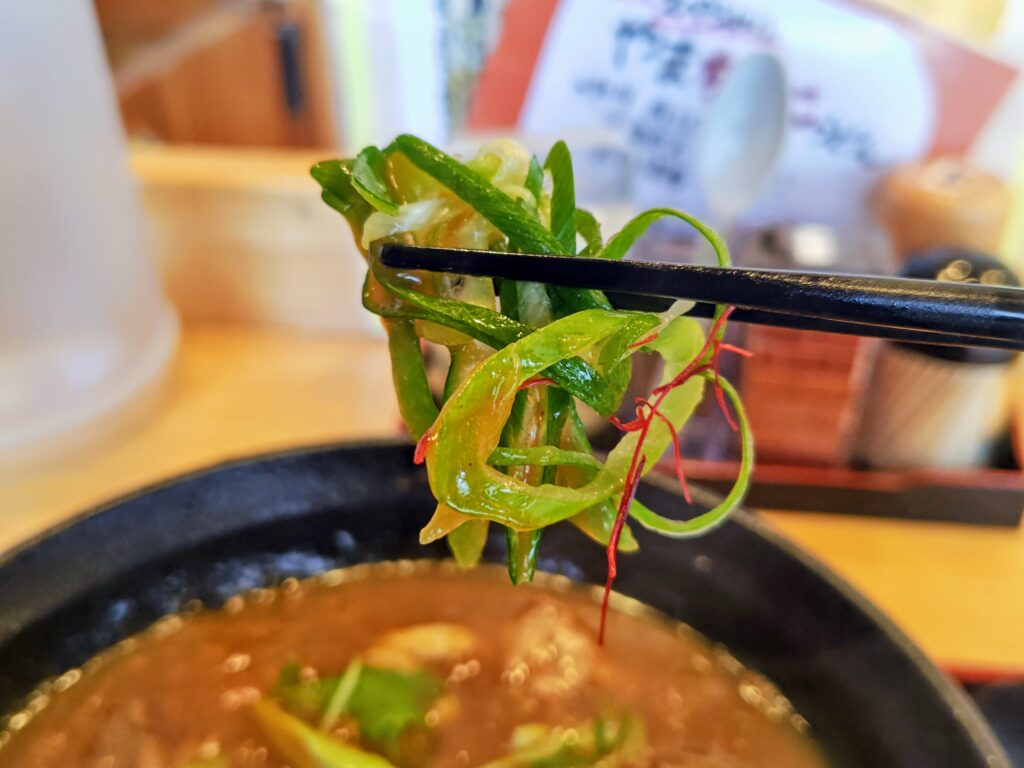 揚げ玉の食感に辛味がプラスされ更に味の奥行きが増します。