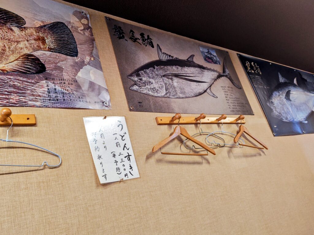 壁にはカラー魚拓が並べられ、釣り好き店主さんと一目でわかります。