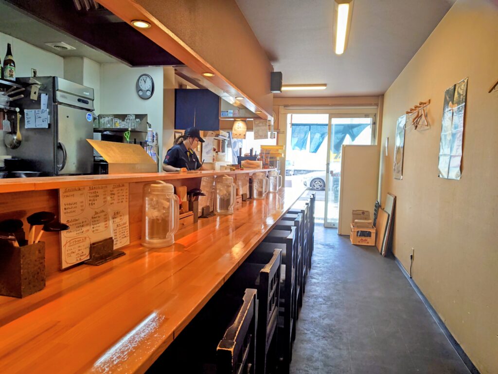 全席禁煙、全16席(カウンター12席、小上がり4席)隅々まで掃除の行き届いた綺麗な店内です。