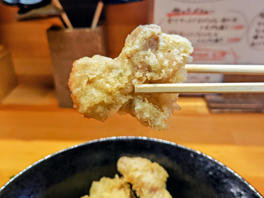 揚げたてのとり天ぷらは薄い衣にカラッと揚がりジューシー!