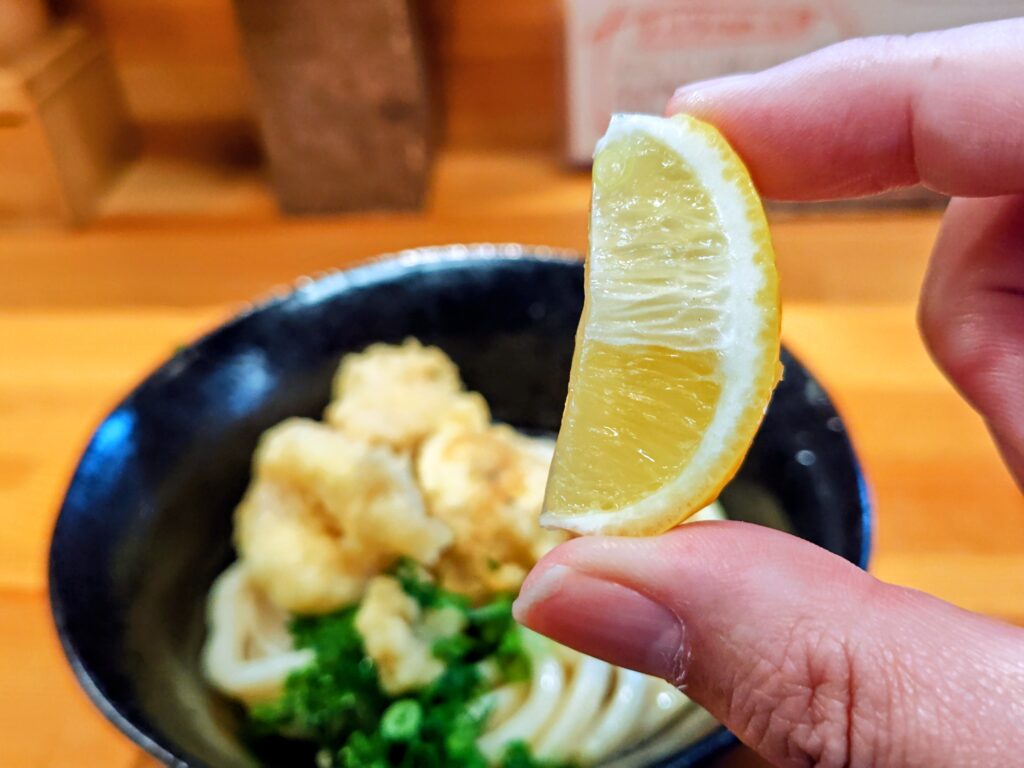 うどんにレモン酸味が加わあり更に啜り心地がよくなります。