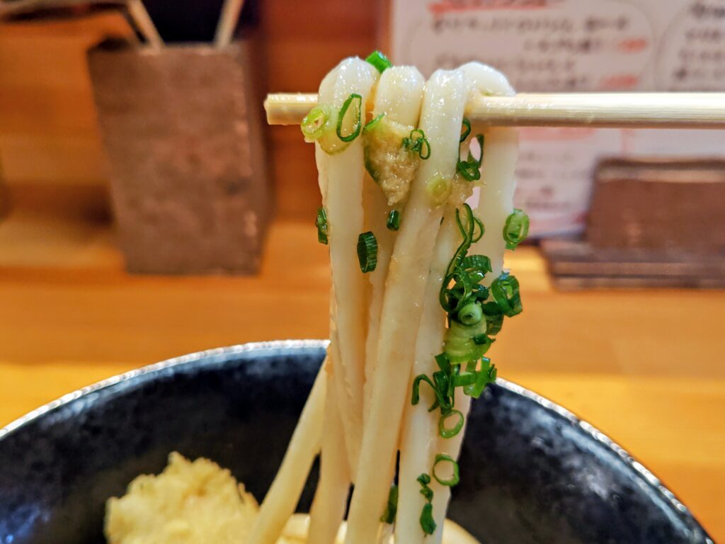 うどんは艶々の太ストレート!