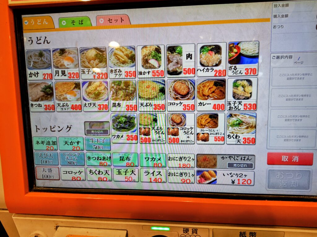 券売機は、うどん、そば、セットのカテゴリーになっているのでご注意ください。