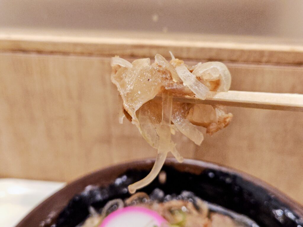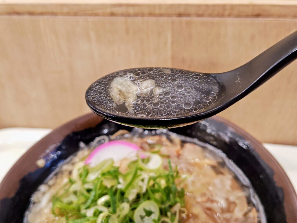 すっきりとして甘みと旨みのある出汁に、油かすの脂が溶け込み更にコク旨になっています。