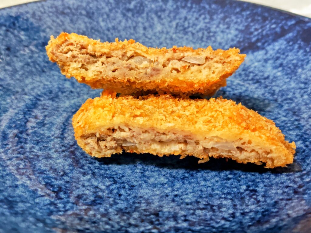 衣はザクッと断面はミンチと粗目に刻まれた玉葱がたっぷり!