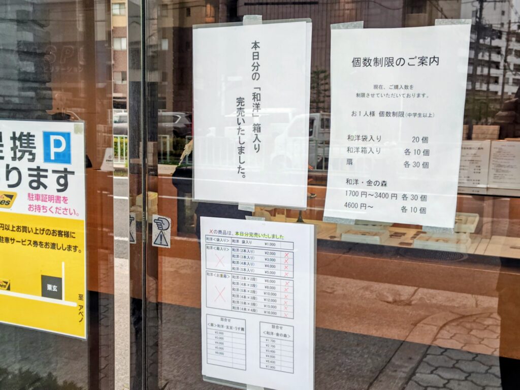 この金曜日15時、和洋の箱入りは全て売切れ(袋入りは購入可能)