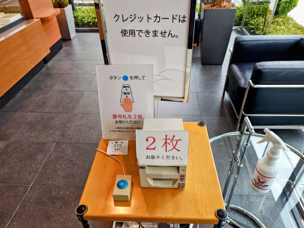 スタッフさんに予約の旨を伝え、氏名と電話番号を紙に書いて本人確認です。