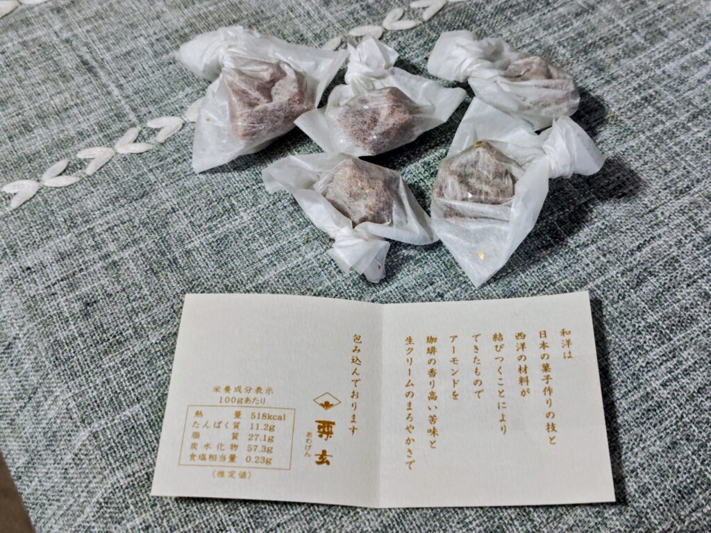 ナイロン包装を開けると和洋の説明書きに個包装の和洋が入っています。