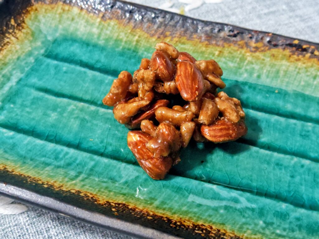 和洋はアーモンドをコーヒー風味の飴で固めた、おこしの伝統技法と西洋の素材が融合したお店スペシャリテ。