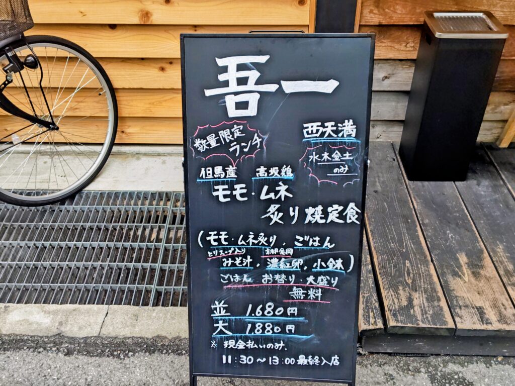 ランチはモモ・ムネ炙り焼定食の1種のみでサイズが並と大を選べます(並1,680円、大1,880円)